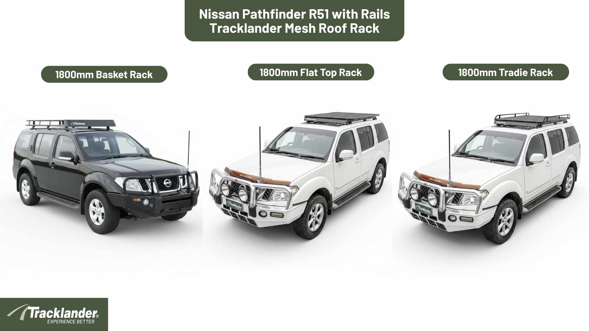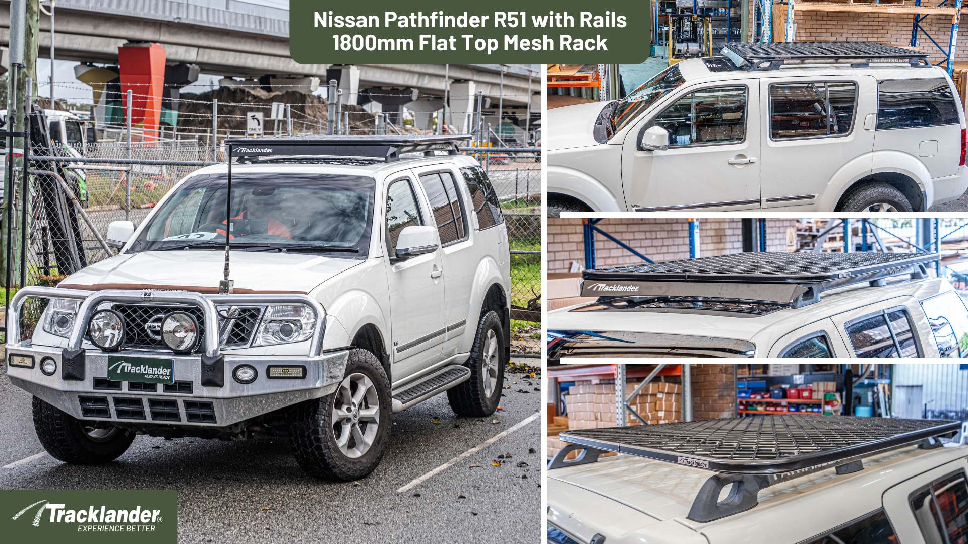 Designed for your Nissan Pathfinder R51 (With Rails) 2005-2013 Tracklander Mesh, these roof rack kits are made to handle anything Australia throws at you. Each kit is precision-engineered for a perfect fit using high-grade aluminium and a fully welded mesh base, giving you strength without weight. Sitting low to the roof for better aerodynamics, these racks cut wind noise and drag, making them the quietest roof racks on the road. Every Tracklander kit is purpose-built for your specific make and model, so installation is simple and secure with no compromise on performance. Lightweight, strong, and backed by a 5-year unlimited kilometre guarantee, it’s the roof rack built to go anywhere you do.