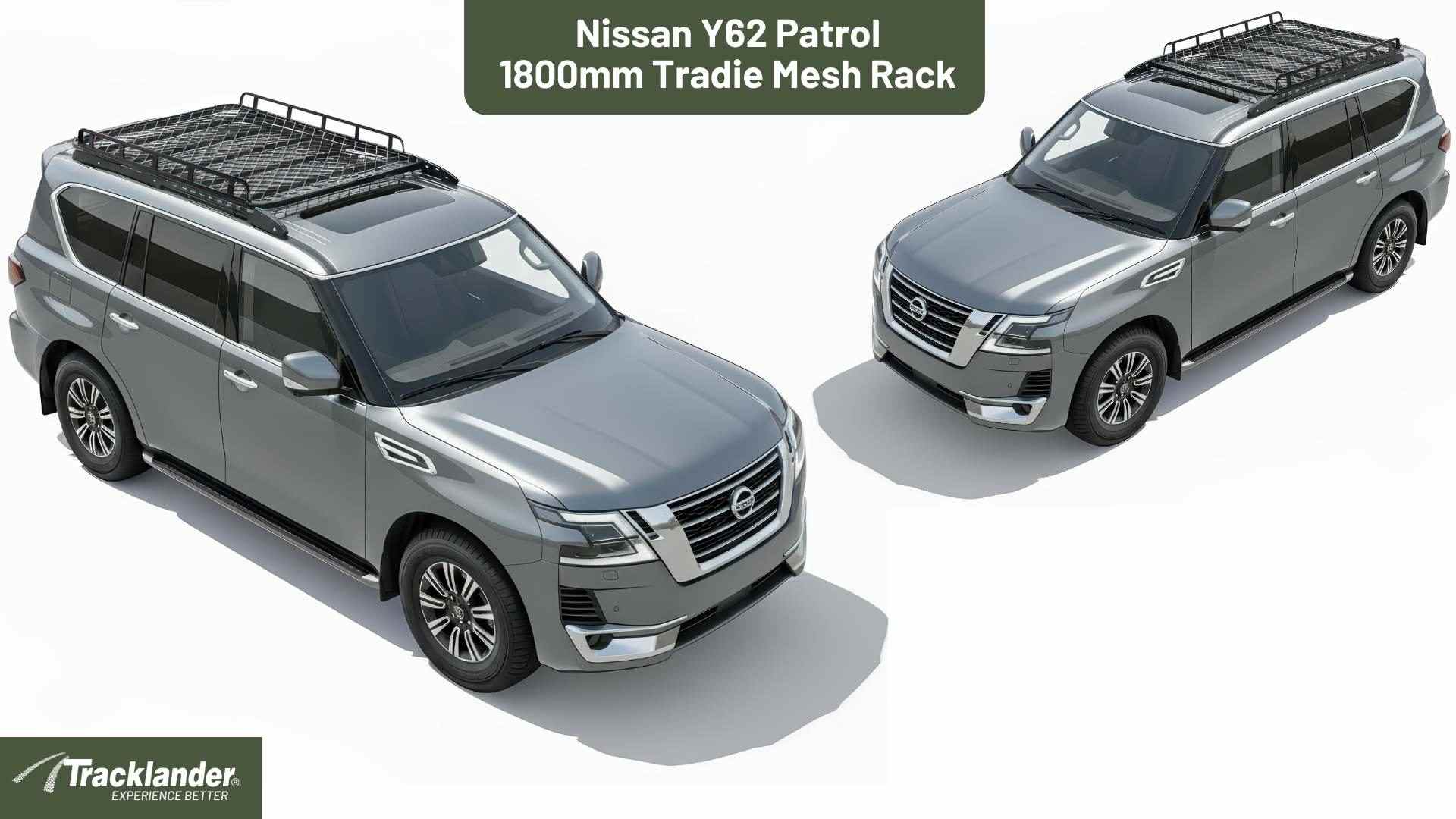 Designed for your Nissan Patrol Y62 2012-Current, these roof rack kits are made to handle anything Australia throws at you. Each kit is precision-engineered for a perfect fit using high-grade aluminium and a fully welded mesh base, giving you strength without weight. Sitting low to the roof for better aerodynamics, these racks cut wind noise and drag, making them the quietest roof racks on the road. Every Tracklander kit is purpose-built for your specific make and model, so installation is simple and secure with no compromise on performance. Lightweight, strong, and backed by a 5-year unlimited kilometre guarantee, it’s the roof rack built to go anywhere you do.
