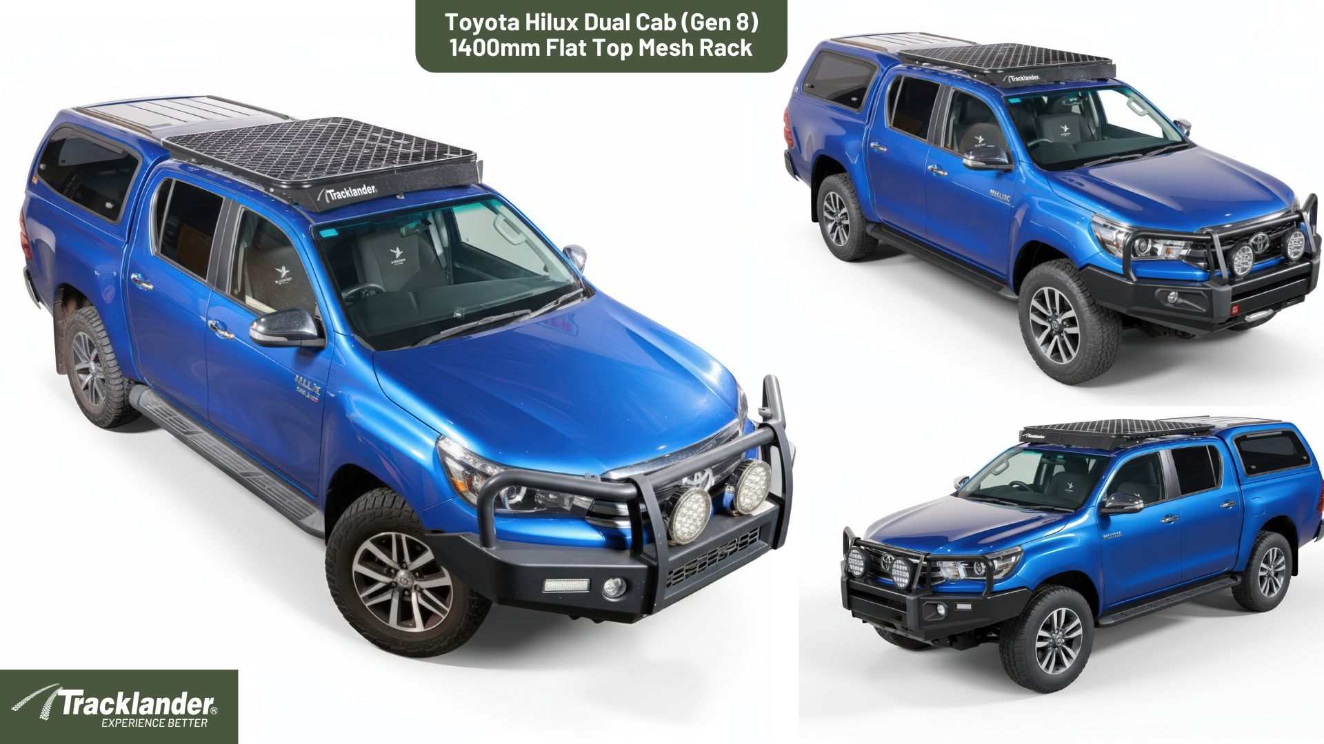 Designed for your Toyota Hilux Gen 8 Dual Cab 2015-Current, these roof rack kits are made to handle anything Australia throws at you. Each kit is precision-engineered for a perfect fit using high-grade aluminium and a fully welded mesh base, giving you strength without weight. Sitting low to the roof for better aerodynamics, these racks cut wind noise and drag, making them the quietest roof racks on the road. Every Tracklander kit is purpose-built for your specific make and model, so installation is simple and secure with no compromise on performance. Lightweight, strong, and backed by a 5-year unlimited kilometre guarantee, it’s the roof rack built to go anywhere you do.