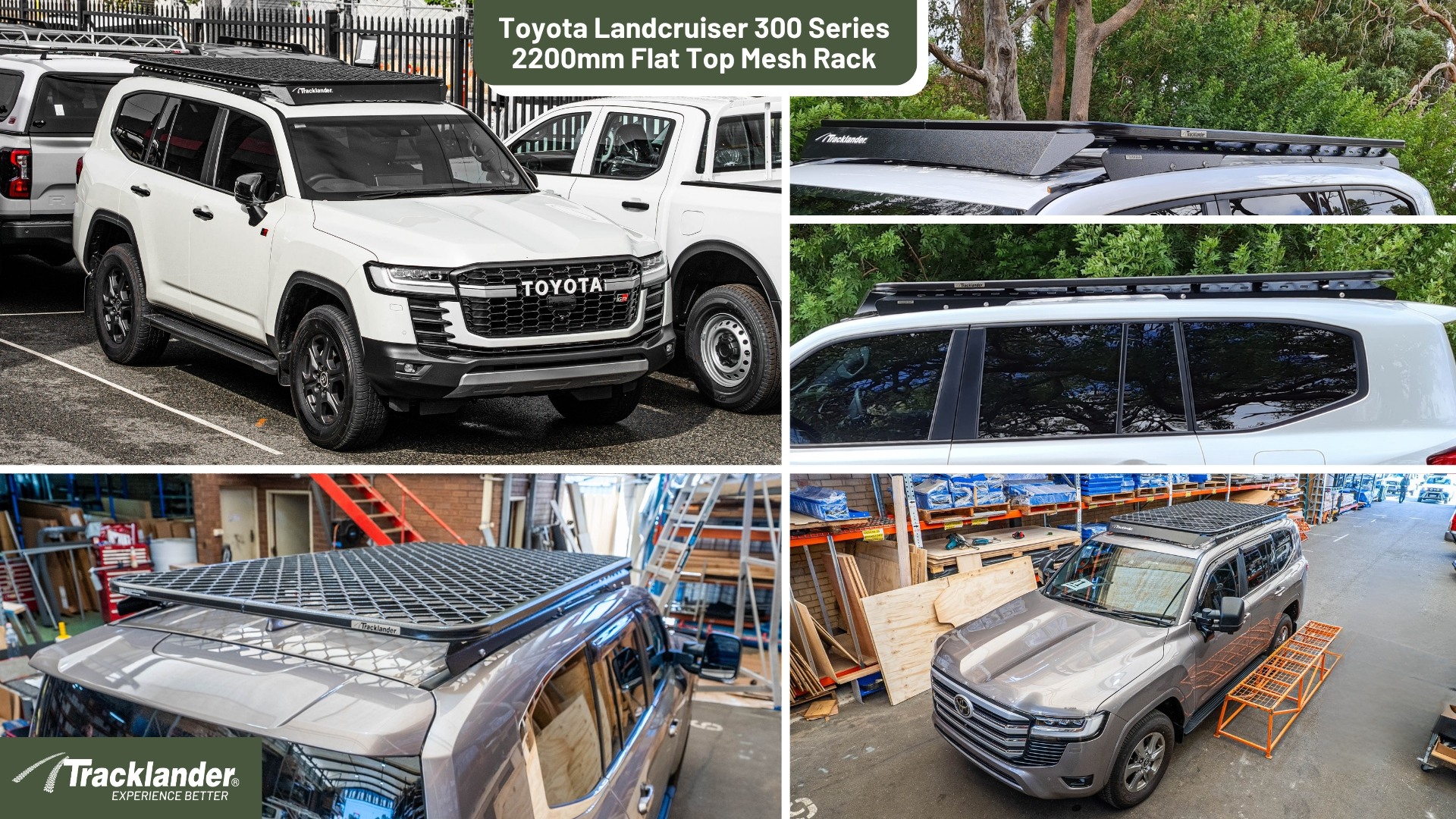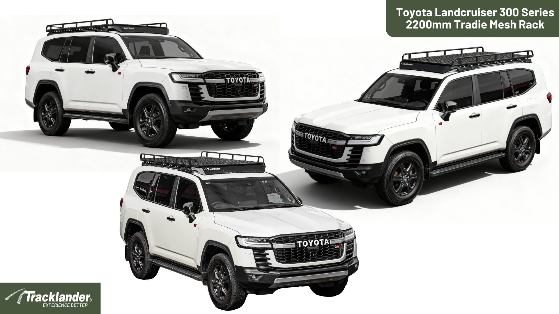 Built tough for Australian conditions, these aluminium roof rack kits are made specifically for your Toyota LandCruiser 300 GX / GXL / SAHARA / GR SPORT Wagon 2021-Current Tracklander Mesh. Super lightweight, low to the roof, and the quietest racks on the road, designed to last a lifetime of work or adventure.