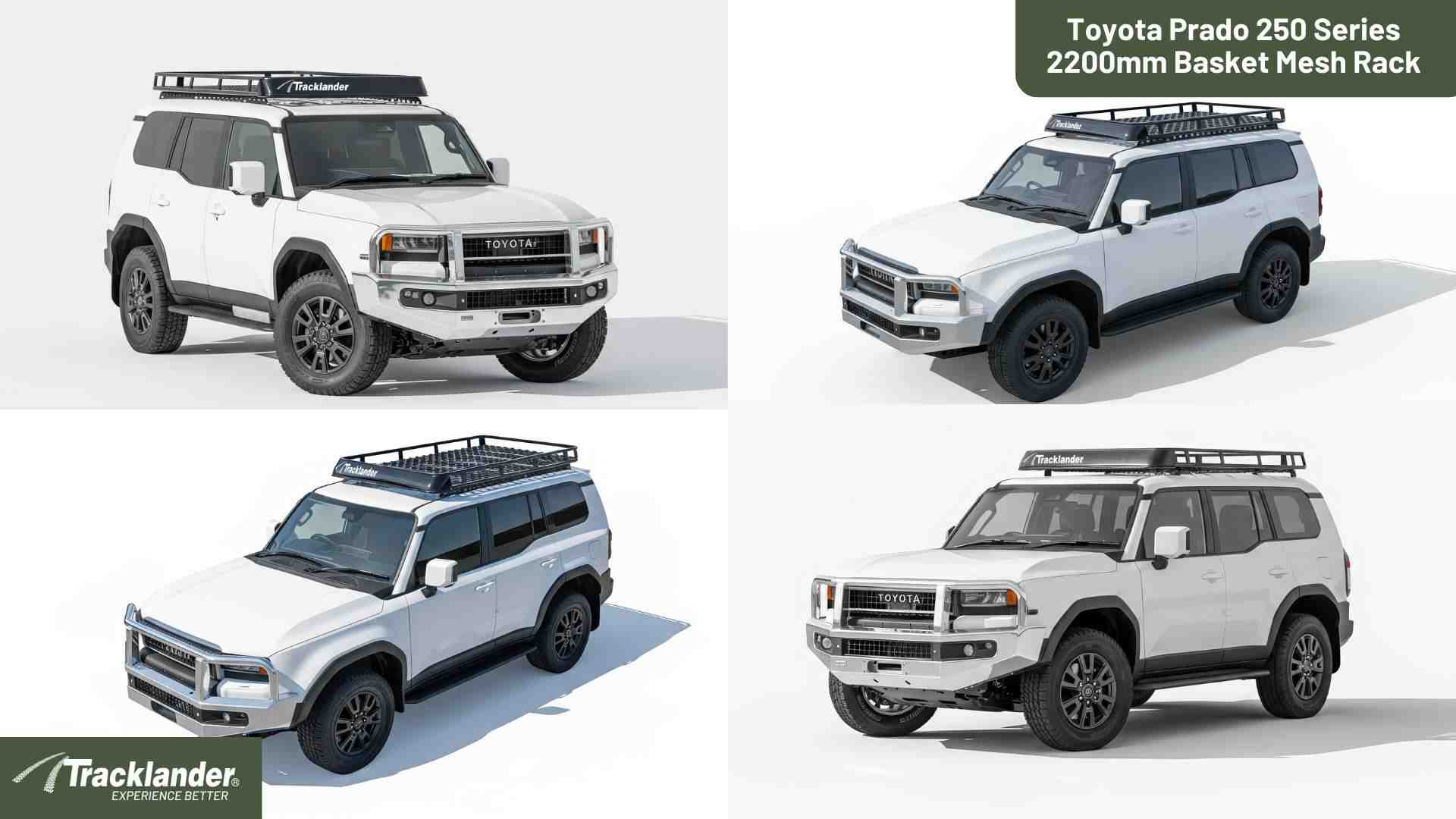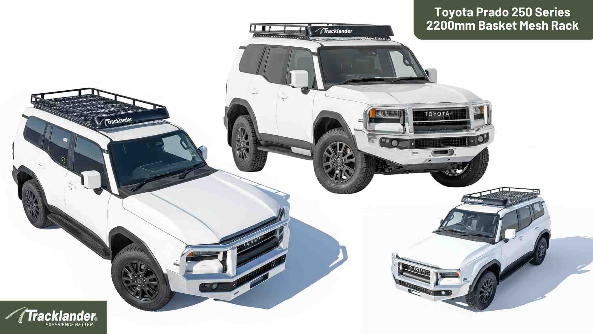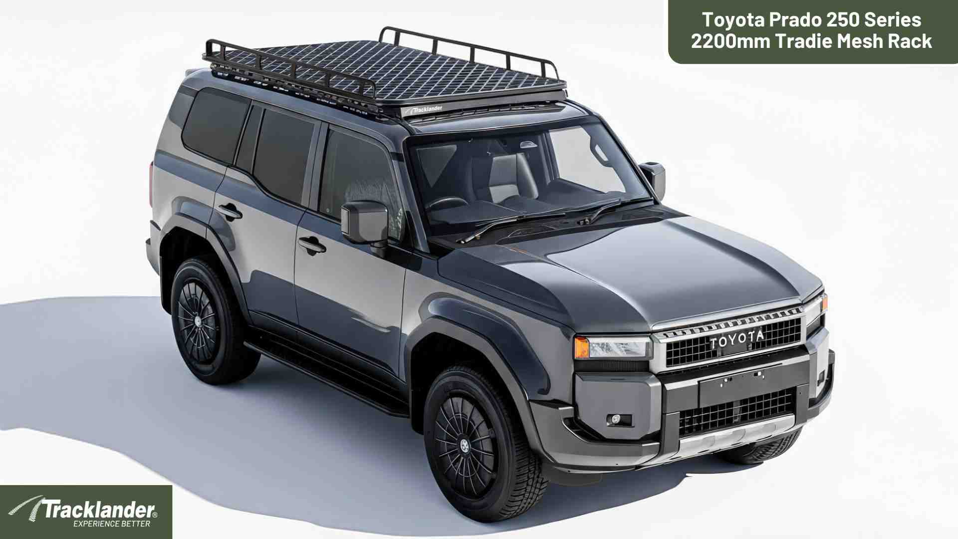 Designed for your Toyota Prado 250, these roof rack kits are made to handle anything Australia throws at you. Each kit is precision-engineered for a perfect fit using high-grade aluminium and a fully welded mesh base, giving you strength without weight. Sitting low to the roof for better aerodynamics, these racks cut wind noise and drag, making them the quietest roof racks on the road. Every Tracklander kit is purpose-built for your specific make and model, so installation is simple and secure with no compromise on performance. Lightweight, strong, and backed by a 5-year unlimited kilometre guarantee, it’s the roof rack built to go anywhere you do.